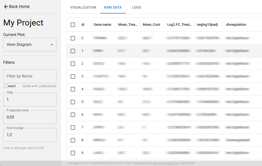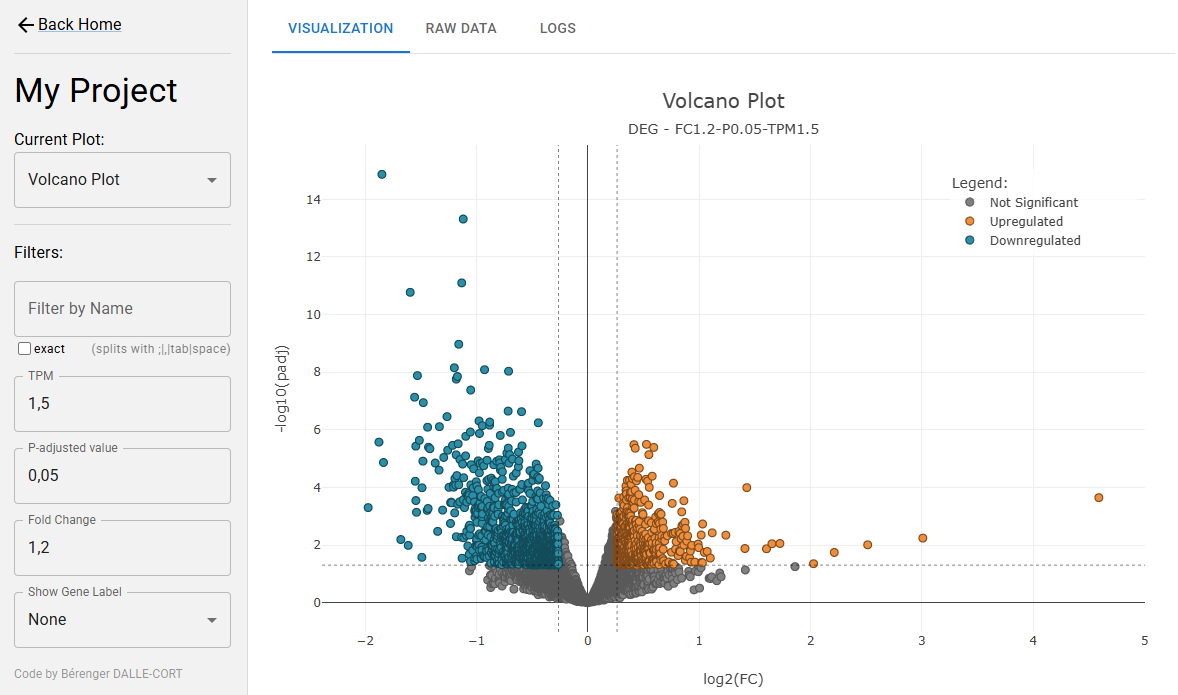 Those plots aren’t static. Indeed, the UI allows users to filter the data interactively, that’s why you see on the left side of the UI some input fields like TPM (transcripts per million), P-value, and FC (Fold Change).